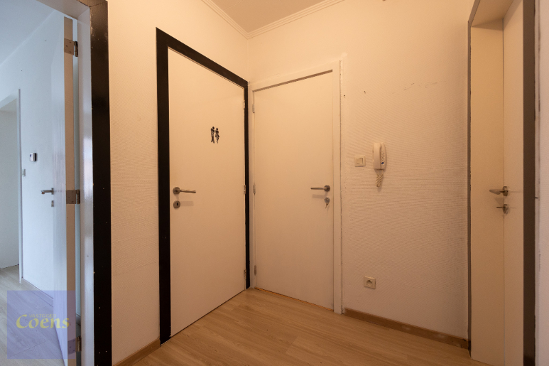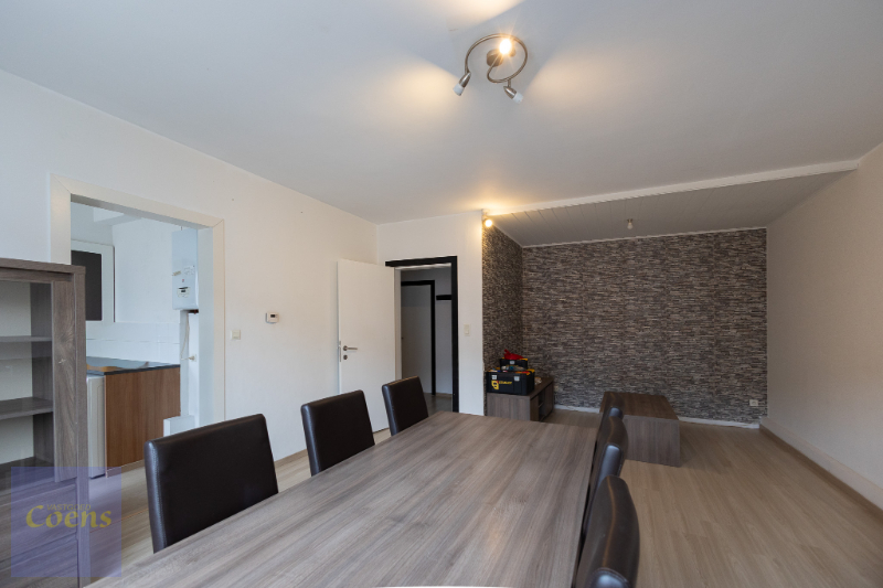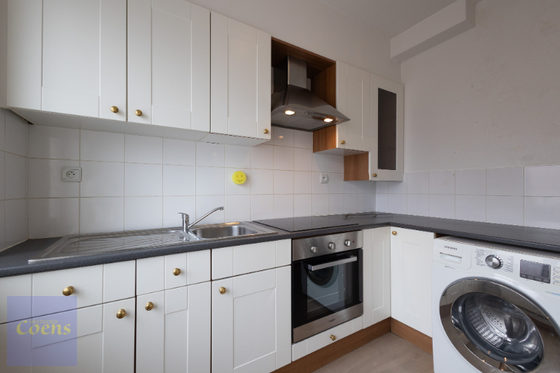 Indeling: inkom, 1 grote slaapkamer en 1 kleinere, badkamer met toilet, wastafel en douche, aangename woonkamer, aparte keuken (koelkast, kookplaat, oven, dampkap). Mogelijkheid aansluiting wasmachine in keuken.