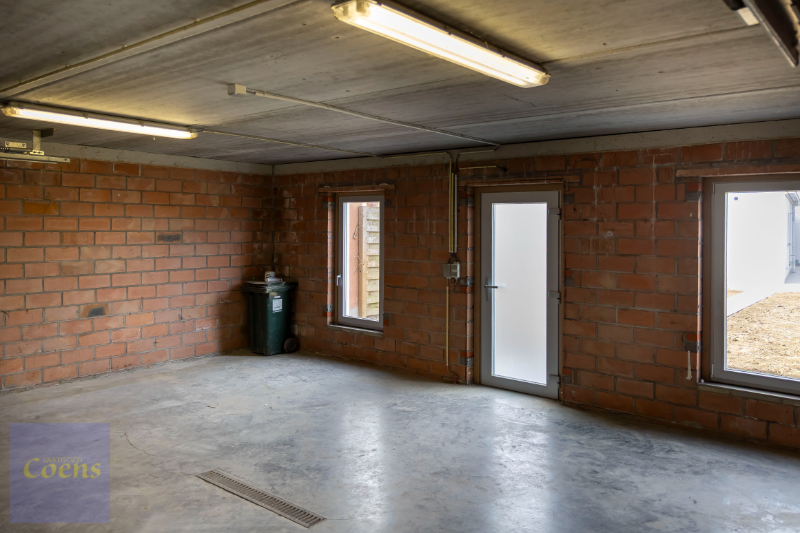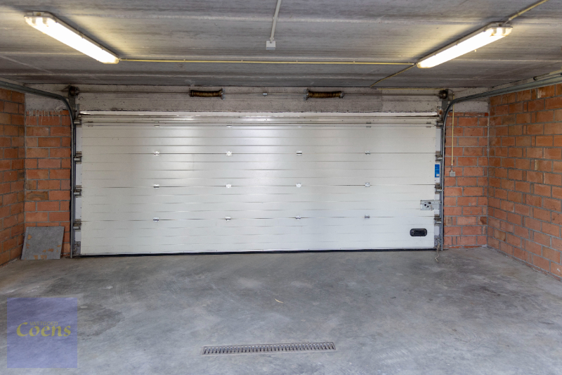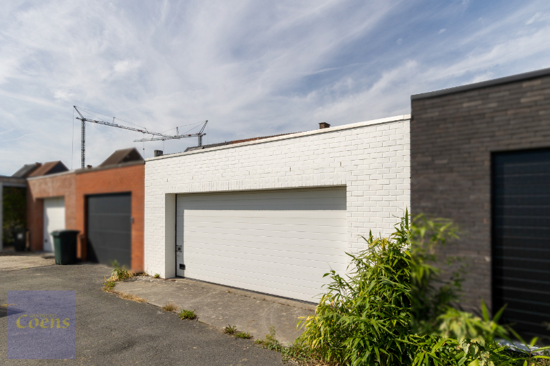 Dubbele garage achteraan, bereikbaar via achterliggend straatje – ideaal voor wagens, fietsen of hobbyruimte.