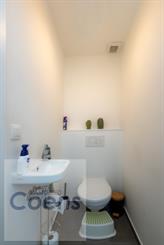 Gastentoilet met handwasbakje in inkom, toilet in badkamer |